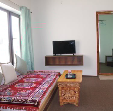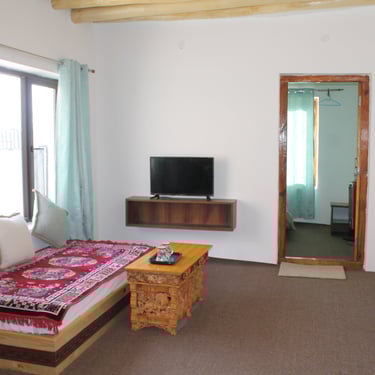 Our Deluxe Rooms offer the perfect blend of traditional Ladakhi design and modern comfort. Featuring beautiful wooden ceilings, warm interiors, and handcrafted local décor, each room creates a cozy and authentic mountain atmosphere. Step out onto your private balcony to enjoy peaceful views and fresh air—an ideal spot for morning tea or quiet evening moments. Each room also comes with a clean, well-maintained attached bathroom for your convenience. We have four Deluxe Rooms of this kind, all designed to provide comfort, elegance, and a true Ladakhi homestay experience.